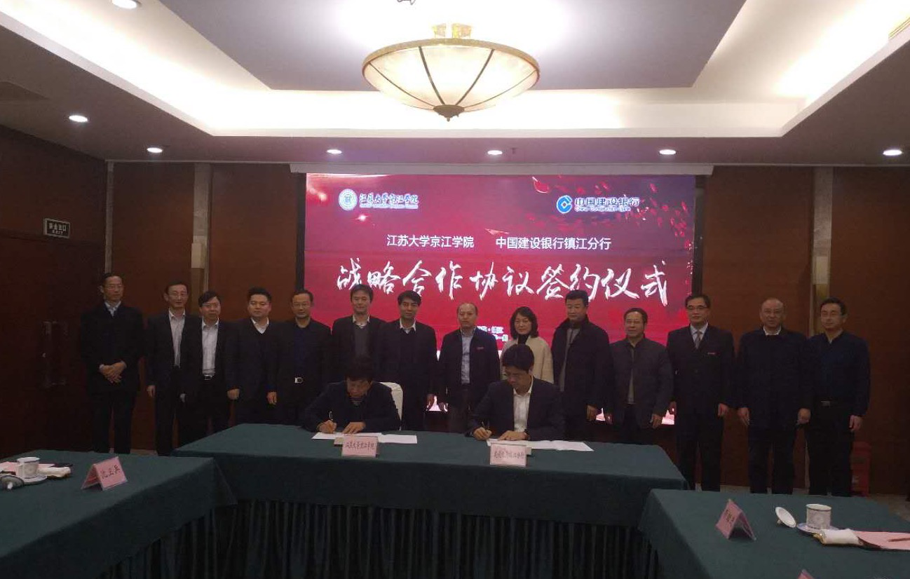 On January 18th, our institute held a strategic cooperation signing ceremony with Zhenjiang Branch of China Construction Bank. Yan Xiaohong, President of Jiangsu University, Chairman of Jingjiang College of Jiangsu University, Chen Baoquan, Vice President of China Construction Bank Jiangsu Branch, and leaders of relevant departments attended the signing ceremony. The agreement is carried out on the framework of the integration and sharing of resources, service education, and building a smart campus. The ceremony was hosted by Chen Hong, Vice President of Jiangsu University.
