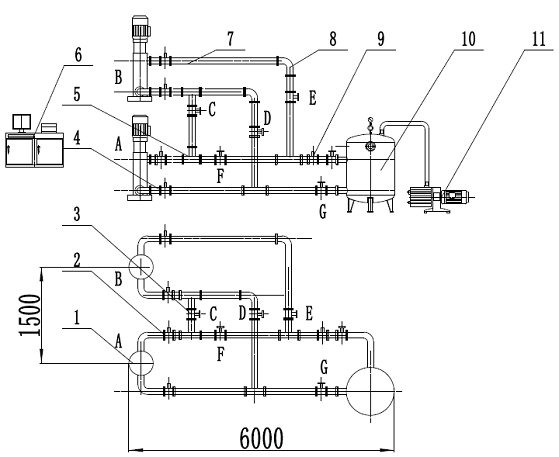 系统图管路的平面布置尺寸,长宽6000*2000。