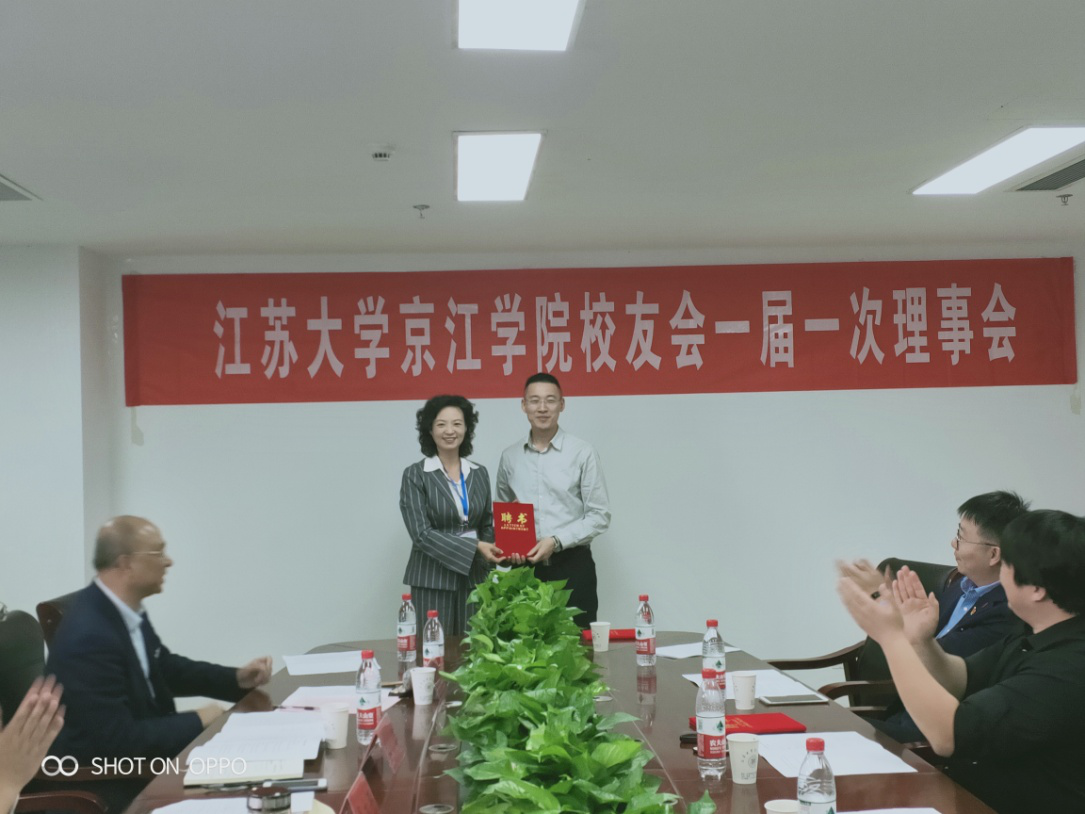 江苏大学发展与对外合作办公室主任朱晏为环球360会员登录校友会会长、常务副会长颁发聘书。