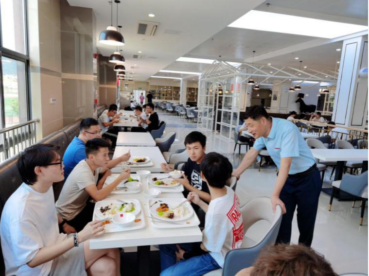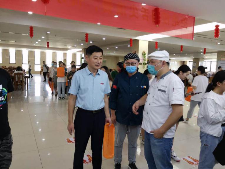 尹志国依次查看了食堂的各个售饭窗口,与就餐同学亲切交谈,详细询问他们返校后的就餐消费及学习生活情况,叮嘱大家要按照学校疫情防护要求做好个人防护,合理安排自己的学习与生活,以积极的心态迎接新学期的到来;与食堂工作人员交流询问了食堂内部的日常管理、食品安全、饭菜分量价格等情况,强调要抓好每一个细节与流程,消除食品安全隐患,确保师生用餐安全,同时要积极响应,倡导厉行节约,配合实施半份菜、按量售饭、“光盘”送饮料等举措,引导师生杜绝舌尖上的浪费,把党委的倡议落实到位。