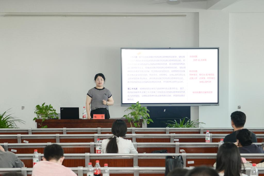 随后,江苏大学心理健康教育中心副主任陆菁以《大学生心理危机的简快识别与行动干预》为题做讲座。陆主任结合大量的生动案例,深入浅出地阐释了心理危机的界定、考量因素和原则等方面,并从第一阶段的心理危机简单评估和第二阶段的行动干预两个阶段着手,为新教师心理危机干预提供了现实路径。