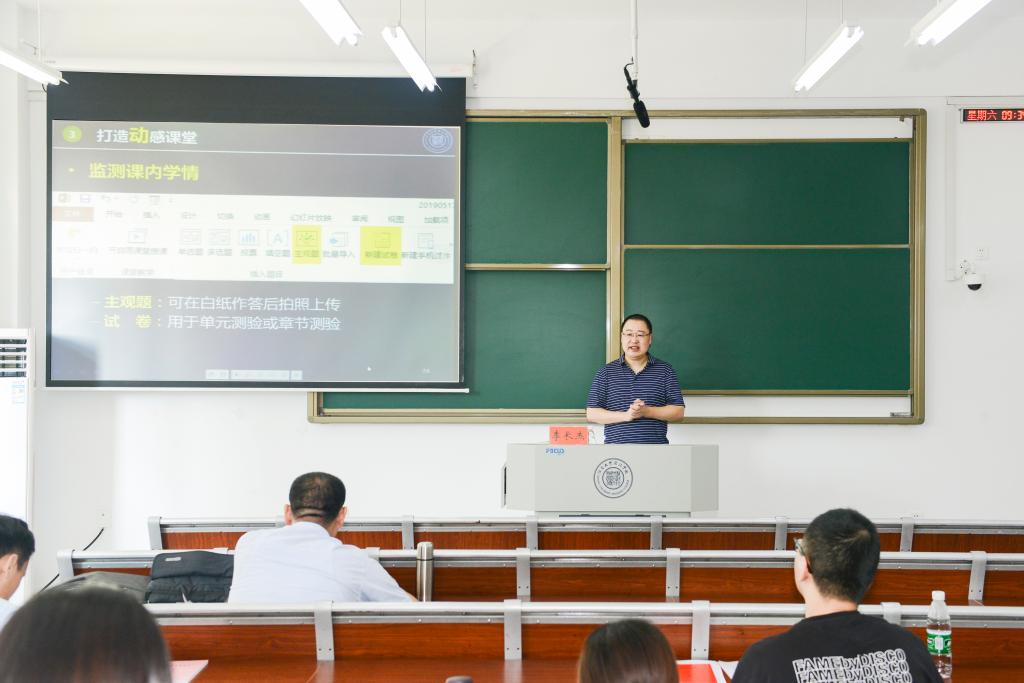 5日上午,江苏大学电气信息工程学院副教授李长杰以《课堂教学设计使用技能及雨课堂在课堂教学中的应用》为题做讲座。从课堂教学设计ABC、磨炼课堂教学PPT、打造动感课堂三个方面详细阐述了课堂教学设计的使用技能以及在课堂教学中如何有效运用雨课堂。鼓励青年教师要创新教学方式,精心打造动感课堂,促进学生认知发展。