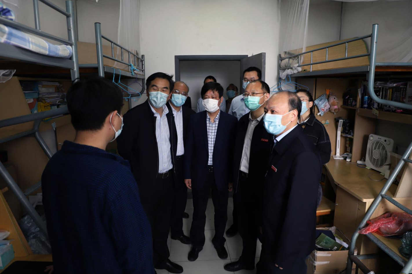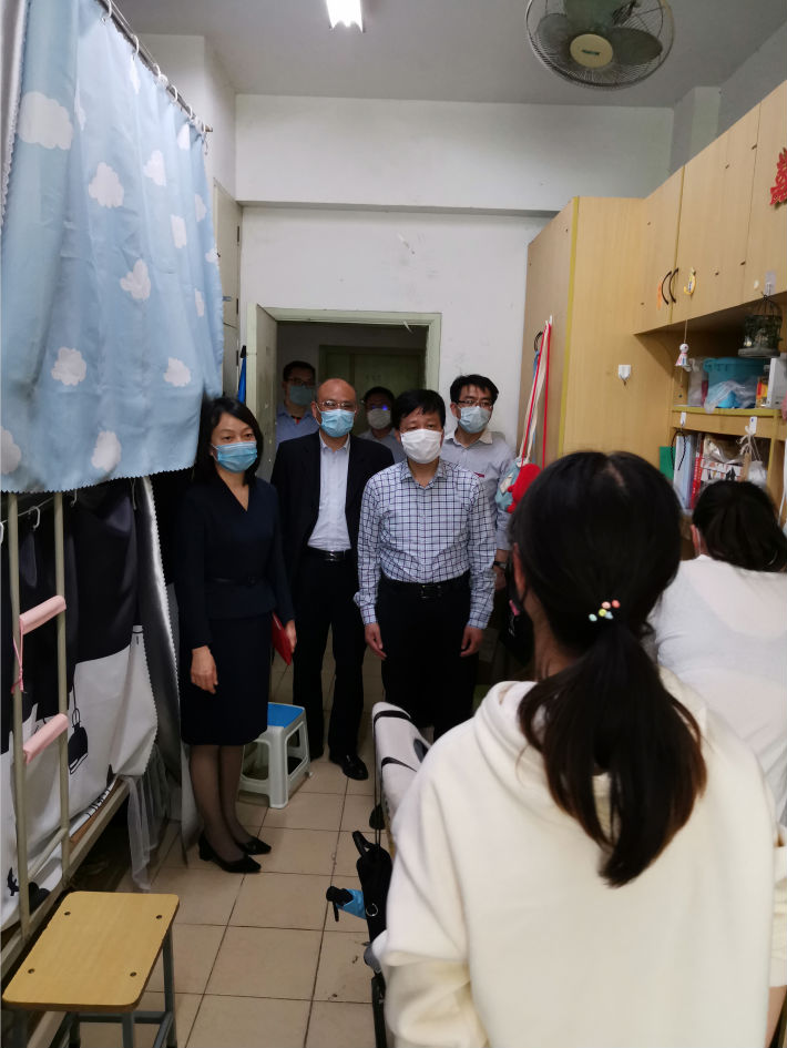 天清风气朗,学子怀芳菲。5月7日是我院2016级毕业生返校的第一天。江苏大学校长、学院理事长颜晓红,江苏大学副校长张济建、全力、陈红携江苏大学校长办公室、学生工作处、安全保卫处、后勤管理处领导和有关工作人员对返校学生进行了走访看望,我院院长路正南,党委书记陈志刚,党委副书记、副院长吴立平陪同看望。