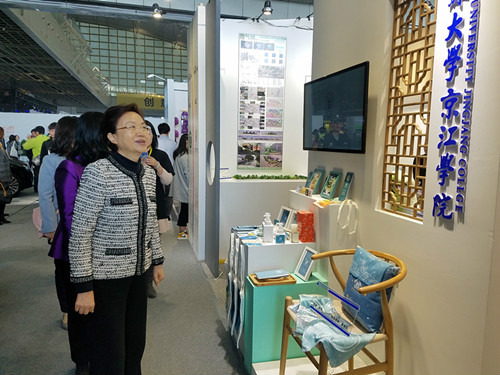 11月22日-24日,2019紫金奖·中国大学生设计展在南京国际展览中心举办。我院作品《三京茶食》(作者:J视觉传达1501卓峰,指导教师:王宏奇)获最佳展品奖三等奖,我院展台获最佳展陈奖优秀奖。省委常委、宣传部部长王燕文亲临我院展位参观并给予肯定,副院长宗伯君代表我院出席开幕式。