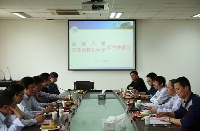怀仁中学代表团还参观了江苏大学校史馆、工业中心、图书馆,并与30余名考入我校的怀仁中学优秀校友亲切座谈、合影留念。参观过程中,该校教师对我校悠久的办学历史、优美的校园环境、一流的教育资源赞不绝口。杨雁校长对我校的雄厚实力以及 “博学、求是、明德”的校园文化氛围表示钦佩和赞赏,对我校热情的接待和周到的安排表示感谢。张忠一副书记表示将继续加强与我院的交流与合作,并在学生中广泛宣传、积极引导,为我院提供更多的优质生源。