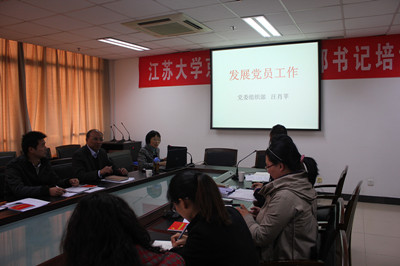 江苏大学组织部汪肖苹调研员向各位支部书记作了《发展党员工作》的专题讲座,介绍了从入党启蒙教育、递交入党申请、同入党申请人第一次谈话、团内推优、确定入党积极分子、对入党积极分子的培养教育、预备党员的接收到预备党员的管理、教育、考察和转正的一系列程序,明确了发展党员工作的规范操作。
