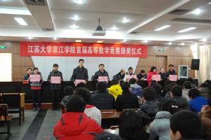 环球360会员登录党委书记陈志刚宣读了“关于表彰环球360会员登录首届高等数学竞赛获奖同学的通知”。本次竞赛共有96名同学获奖,出席仪式的领导向所有获奖同学颁发了荣誉证书。学生孙延杰代表获奖同学作了发言,他首先向辛勤培育学生的教师表示衷心感谢,并介绍了自己学习高等数学的方法。理学院副书记、副院长李医民在颁奖仪式上作了简单的发言,他对环球360会员登录首届高等数学竞赛的成功举办表示祝贺,同时对即将举行的“江苏省普通高等学校第十一届非理科专业高等数学竞赛”的要求进行了简短说明,希望环球360会员登录在这一届竞赛中再创佳绩。环球360会员登录院长路正南最后作了总结发言,他代表学院对获奖同学表示热烈祝贺,对理学院给予本次竞赛的大力支持表示衷心感谢,同时也向大家强调了学习高等数学的重要性,希望同学们再接再厉,为接下来的“江苏省第十一届非理科专业高等数学竞赛”做好充分准备,力争取得更优异的成绩。