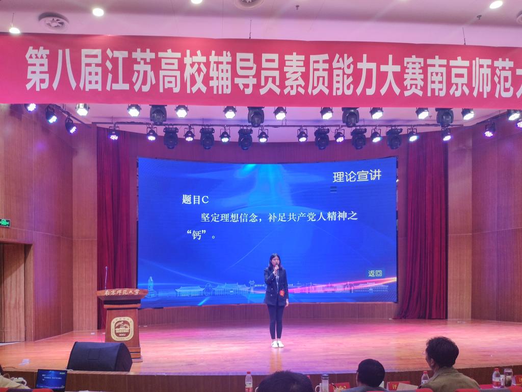 10月21-22日,由江苏省委教育工委、江苏省教育厅主办、江苏省高等教育学会辅导员工作研究委员会、江苏省高校辅导员培训研修基地(南京工业大学)承办的第八届江苏高校辅导员素质能力大赛南京师范大学基地复赛在南京师范大学举行。经过激烈角逐,我院辅导员吴颖获得本次大赛三等奖。