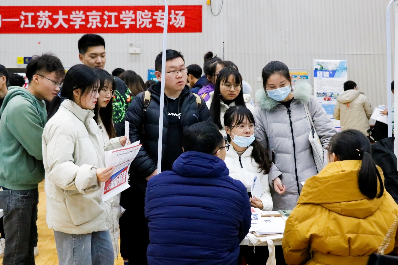 本次招聘会是常态化疫情防控以来我院规模较大的一次线下招聘,联合镇江市人力资源和社会保障局,共召集87家用人单位,齐聚学院招贤纳才,现场提供有效就业需求岗位超过2800个,岗位需求涵盖我院各个专业,职位众多,待遇优厚,现场共吸引600余名毕业生进场应聘,招聘现场气氛热烈,秩序井然。