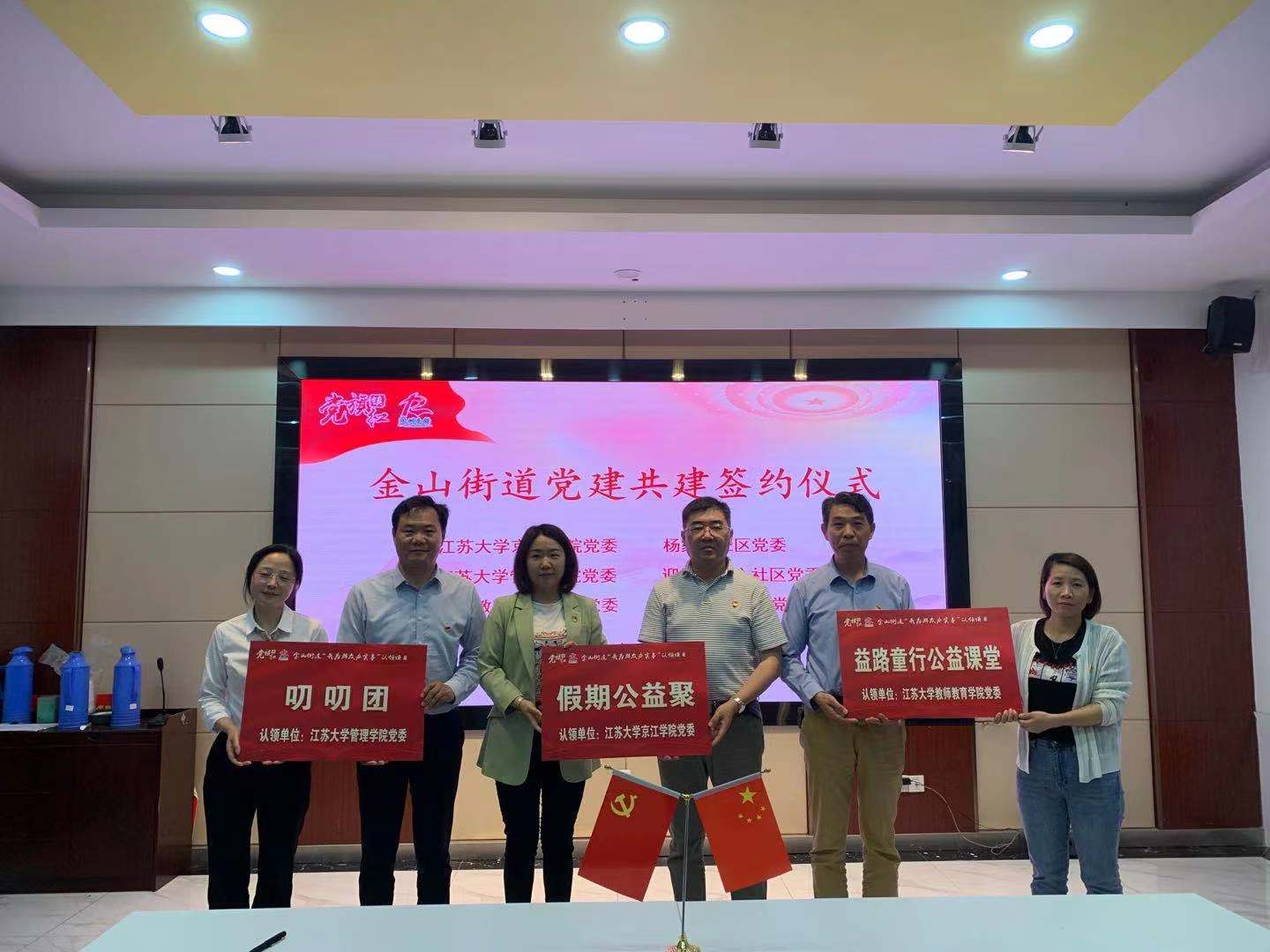 共建仪式上,金山街道党工委书记黄华良代表金山街道对环球360会员登录、江苏大学管理学院和江苏大学教师教育学院对金山街道党建工作的支持表示衷心的感谢,并简要介绍了金山街道党建工作情况。随后,陈立勇等分别介绍了各自学院基本情况与党建工作情况。最后,黄华良与陈立勇等分别签订了党建共建合作协议,并分别认领了“假期公益聚”等党建共建项目。