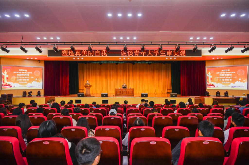 12月8日,南京大学哲学系教授、博士生导师张晓东应邀来到我院,作了题为“塑造真美的自我——谈谈青年大学生审美观”的学术讲座。此次讲座由院长赵喜仓主持,江苏人民出版社党委书记、社长王保顶受邀担任特邀嘉宾,江苏大学杂志社社长崔金贵、编辑部主任张向凤,我院党委副书记、副院长吴立平以及300余名师生出席并聆听了报告。