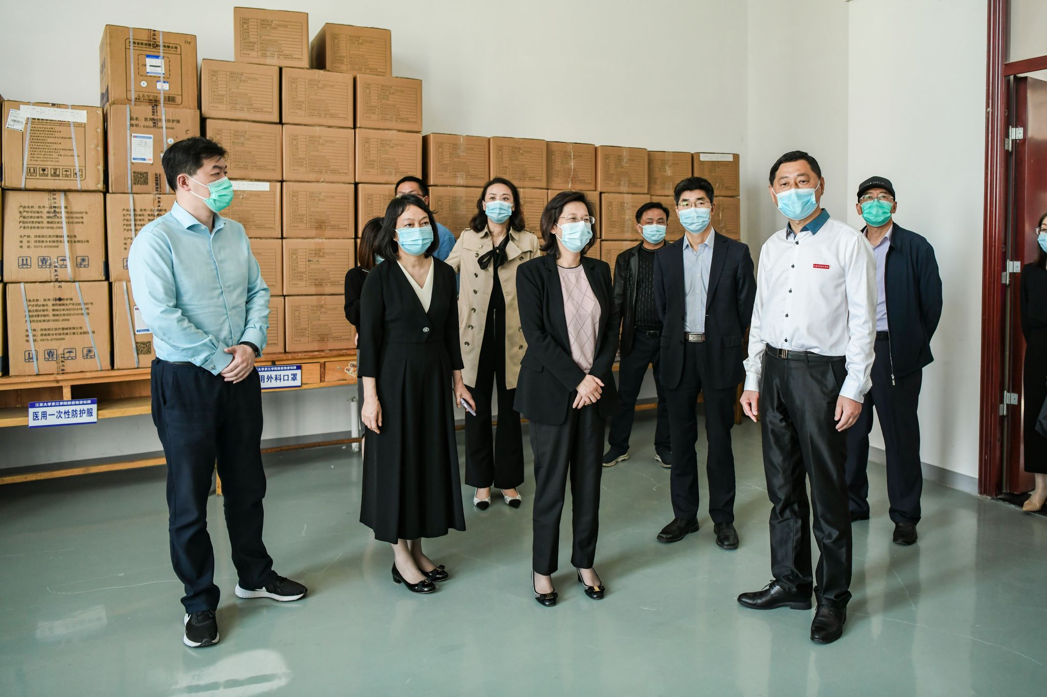 殷敏一行实地察看了学生食堂、物资储备中心以及快递物流中心等重点部位。