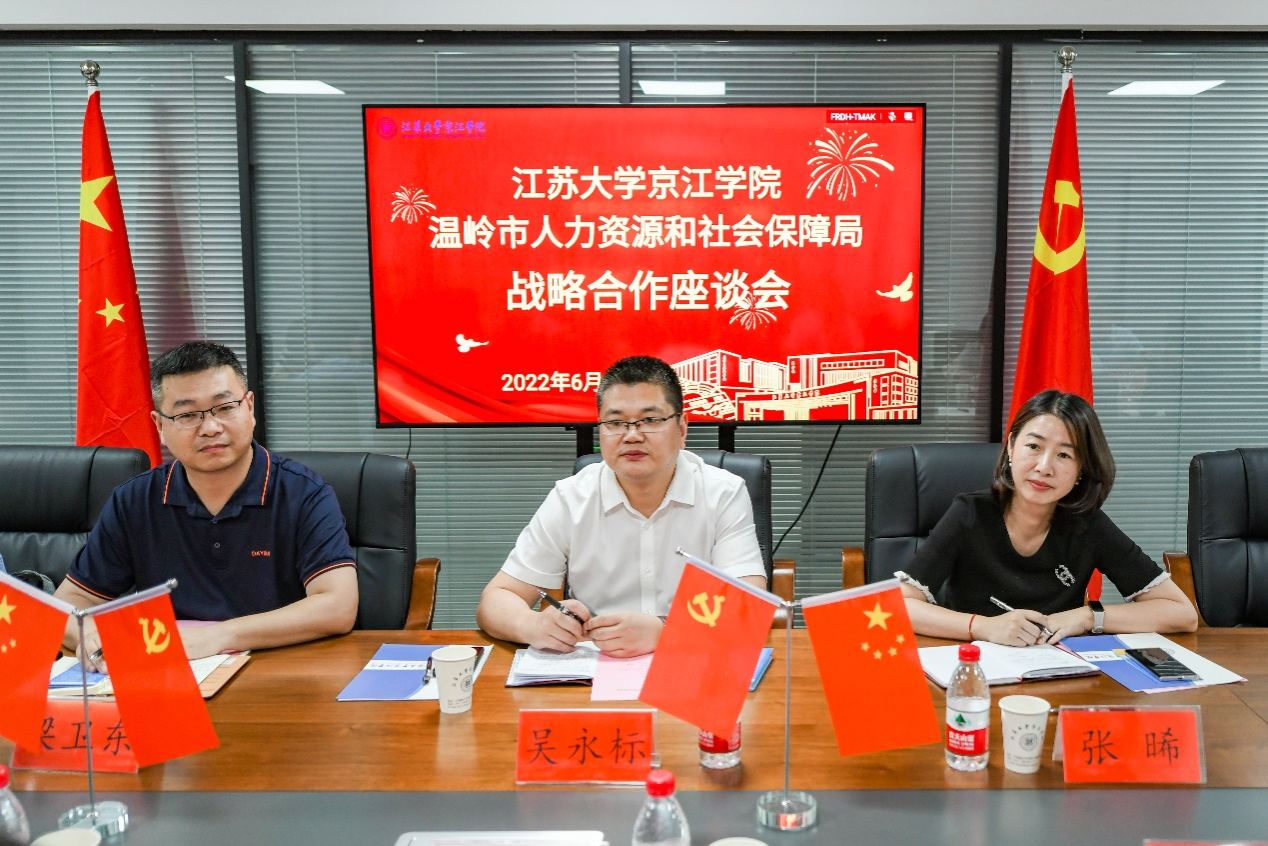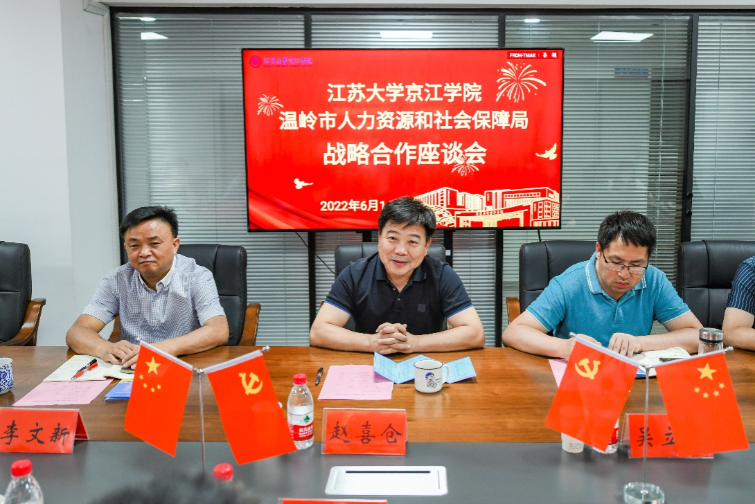 6月14日下午,浙江省温岭市人力资源和社会保障局党委委员、副局长吴永标一行来到我院调研交流。院长赵喜仓,党委副书记、副院长吴立平出席会议,相关职能部门及机械与动力工程学院党负责人参加了会议。