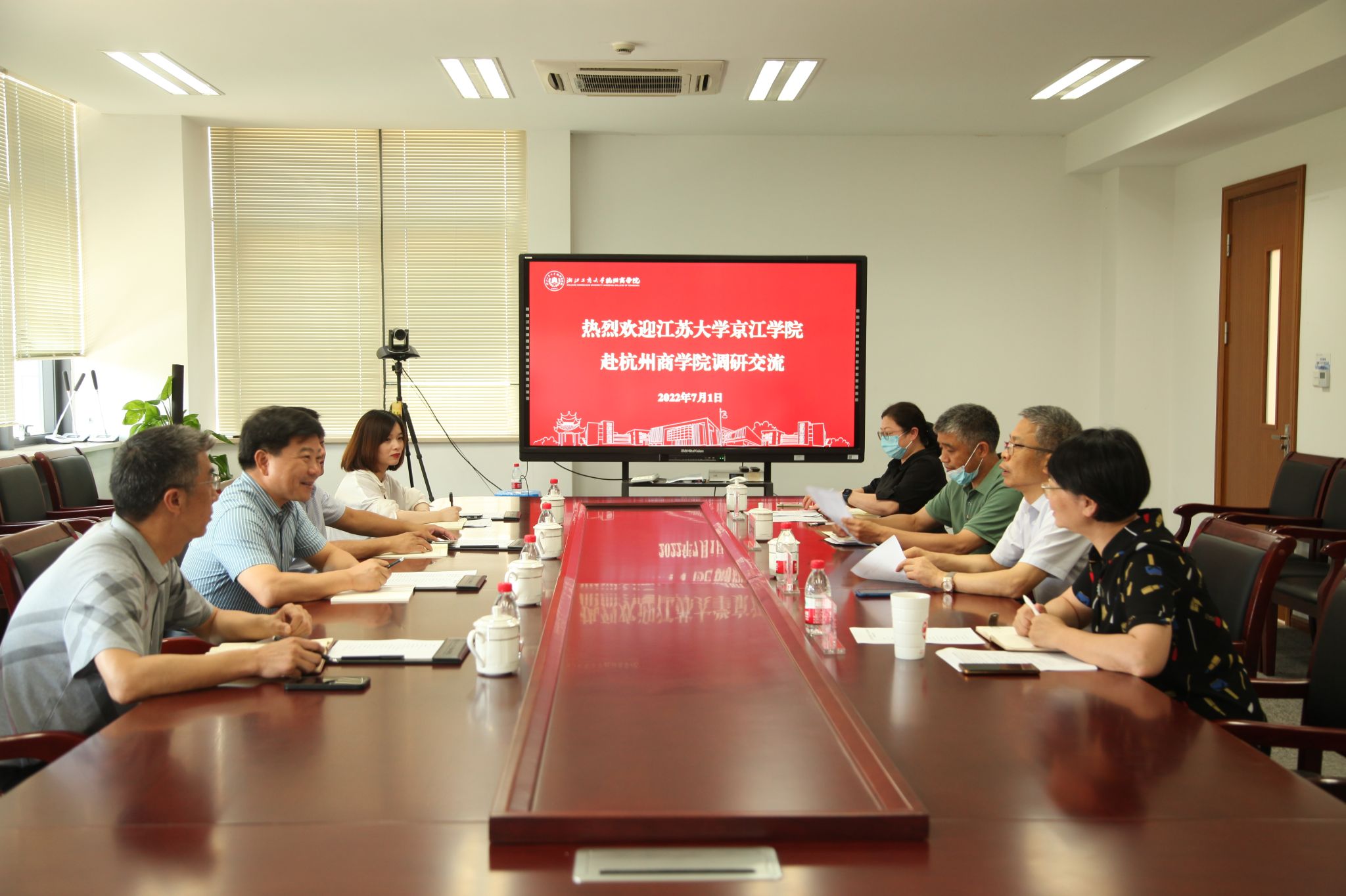 7月1日下午,院长赵喜仓带队赴浙江工商大学杭州商学院调研交流。浙江工商大学杭州商学院院长江涛、副院长倪丽敏接待了来访。浙江工商大学杭州商学院教务处、社会合作处、公共事务处部门负责人,我院综合办公室、财务与资产管理部负责人参加了交流会。