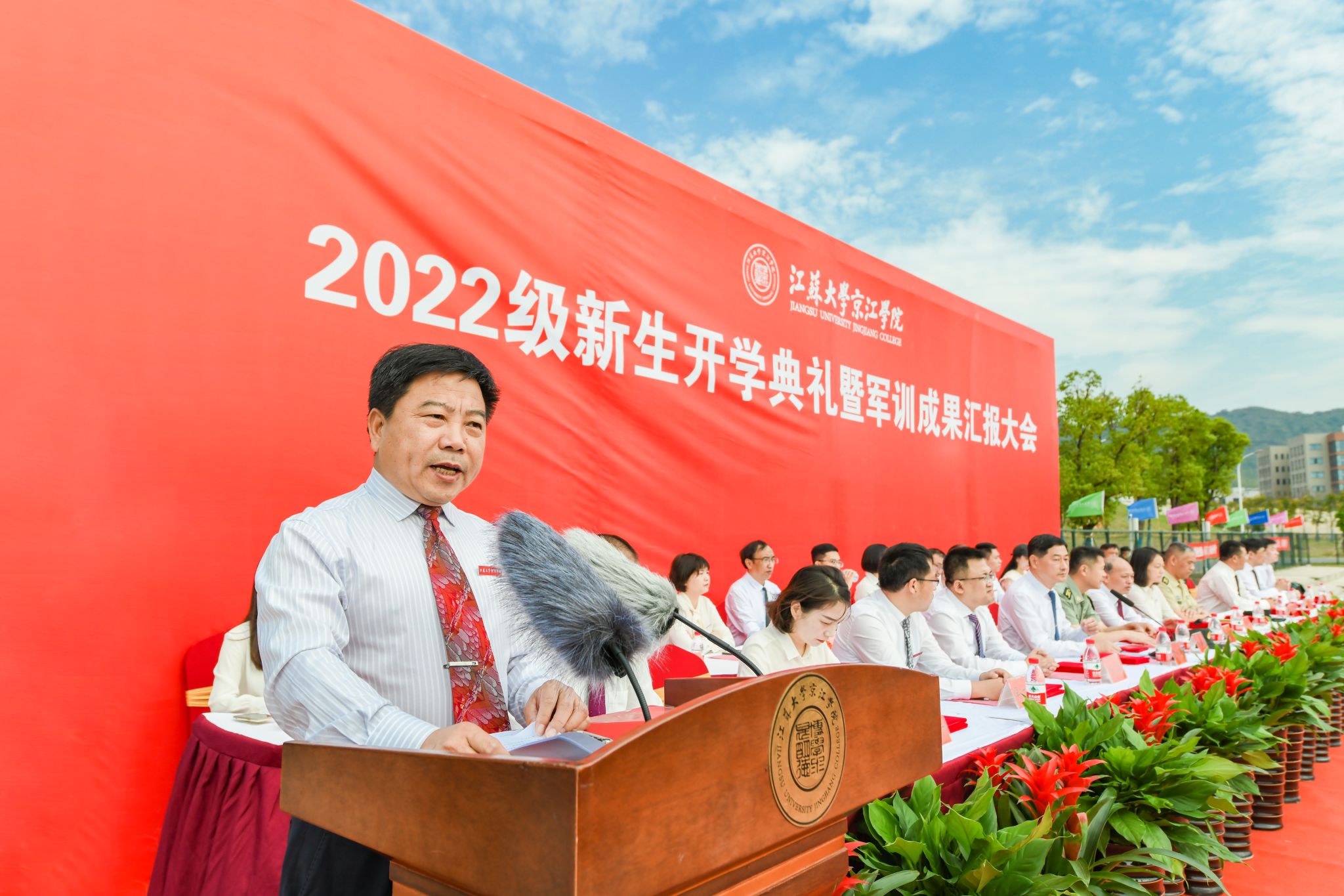 典礼上,院长赵喜仓代表全体师生对2022级新同学的到来表示衷心的祝贺和热烈的欢迎,向支持我院军训工作的领导、教官和老师们致以亲切的慰问和诚挚的感谢。赵喜仓介绍了镇江的历史文化和环球360会员登录的发展历程及成就,希望同学们在成为“京江人”之时,把自己的青春融入江大血脉,植入江大基因,在挥洒青春、追求卓越的道路上,“励志笃行,成才强国”,努力把自己培养成为德智体美劳全面发展的社会主义建设者和接班人,做一个有理想、有情怀的人,一个有知识、有智慧的人,一个有担当、有作为的人。