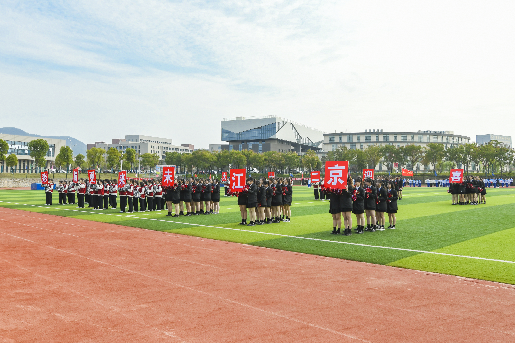 在慷慨激昂的运动员进行曲中,来自机关教职工和二级学院师生代表的八支方阵队伍迈着整齐有力的步伐,精神抖擞地走过主席台,接受检阅。入场仪式后是庄严的升国旗仪式,国歌声中,现场全体师生起立致敬。