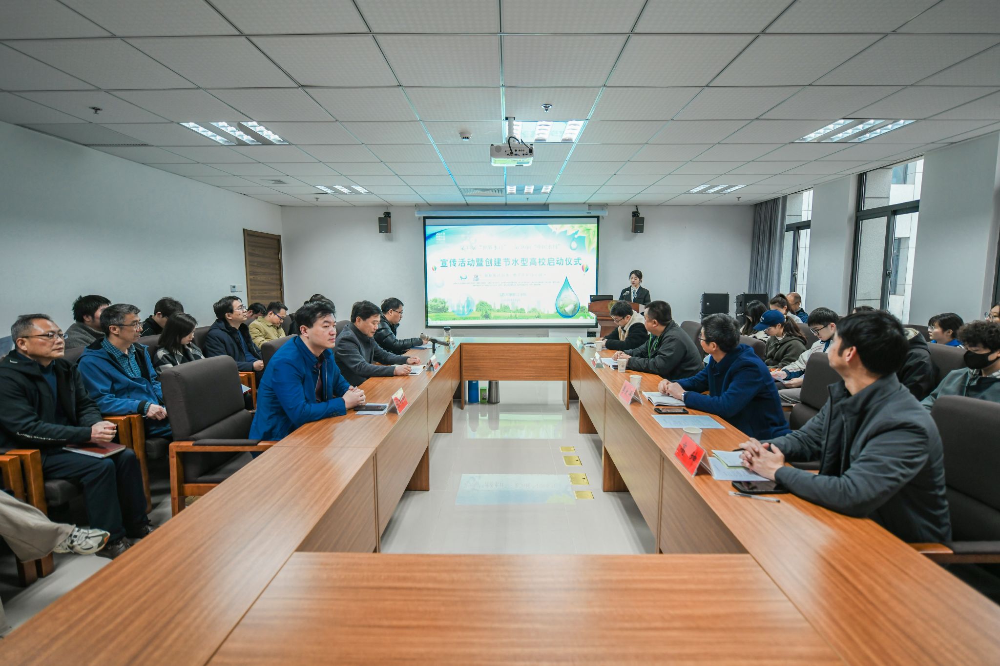 院长赵喜仓在启动仪式上讲话。他指出,创建节水型高校是贯彻落实习近平新时代中国特色社会主义思想的内在要求,是落实新发展理念即创新、协调、绿色、开放、共享五大发展理念、实现高质量发展和中国式现代化的行动体现,是推进大学治理能力现代化的现实需要。