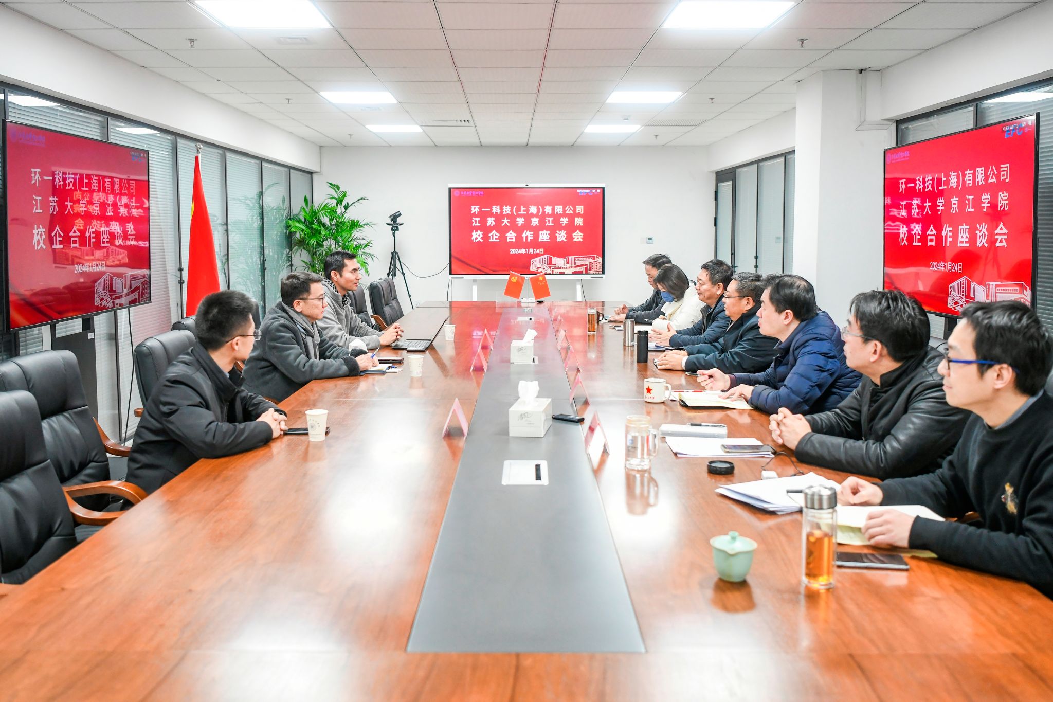 1月24日上午,环一科技(上海)有限公司董事长陈强强、CEO唐秉杰一行来我院调研交流双方产学研合作事宜。江苏省科技副总、江苏大学环安学院陈寻峰博士,学院领导班子全体成员参加交流会。