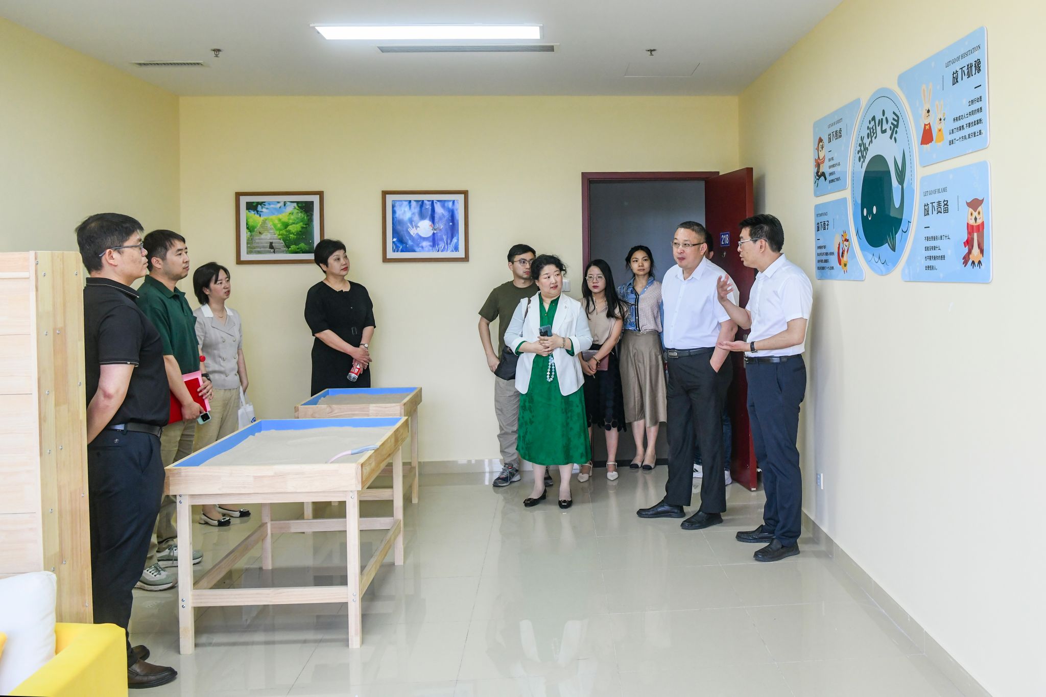 仪式结束后,全体人员共同参观了心理健康服务与发展中心。参观过程中,曹卫东提出了对“知心姐姐工作坊”(大学生心理健康服务与发展中心)未来发展的建议。