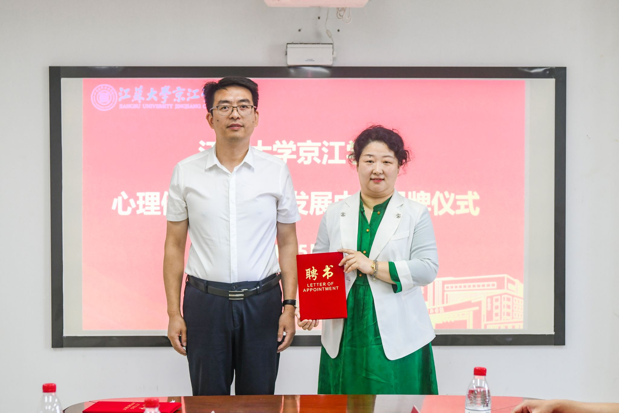 随后,蒋豪为受聘于我院心理健康服务与发展中心的专业医师和江苏大学指导老师颁发聘书。