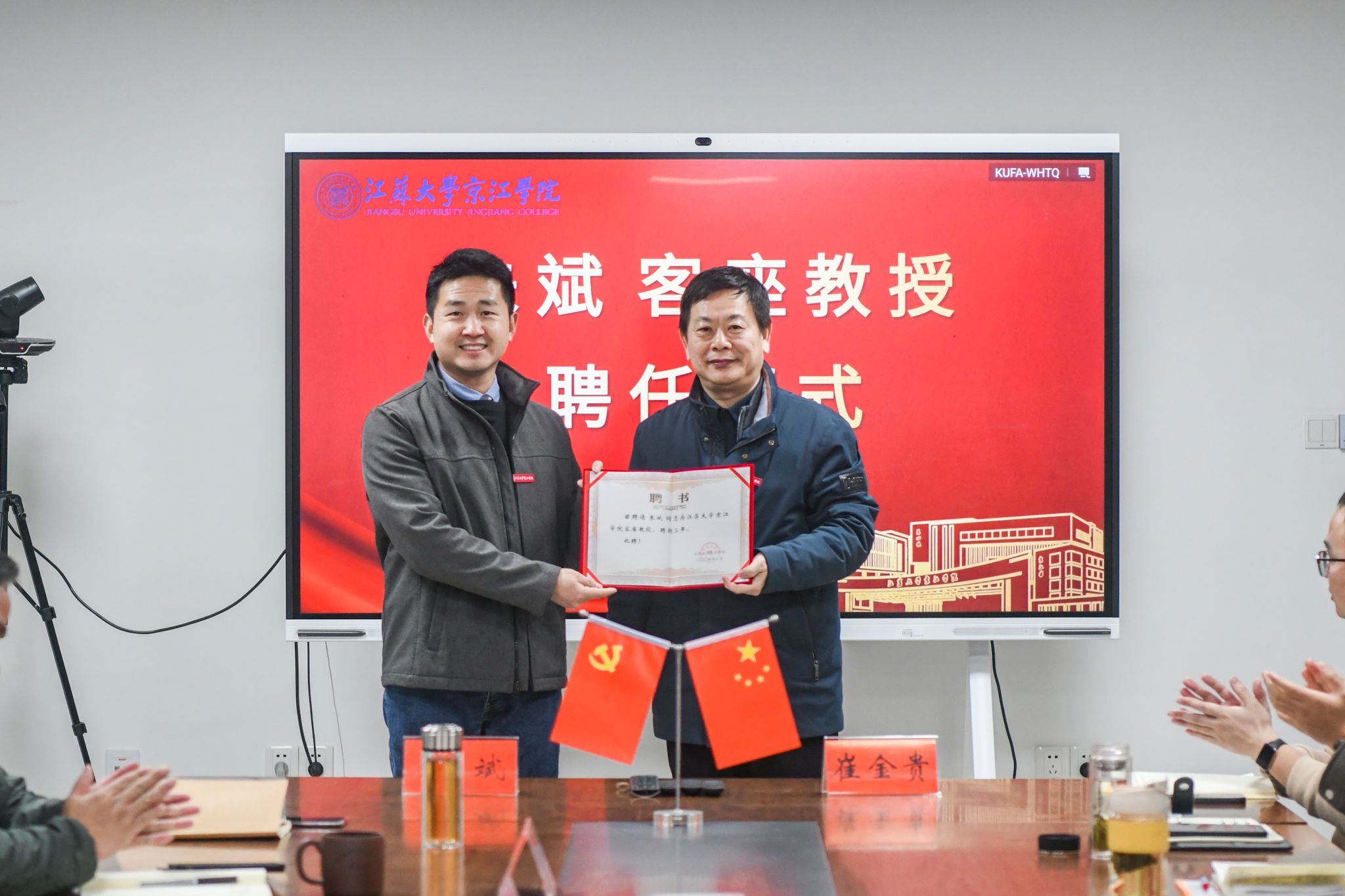 杜道林对朱斌受聘环球360会员登录客座教授表示感谢,并介绍了朱斌的研究方向、学术成果及个人成就。院党委书记崔金贵为朱斌颁发了客座教授聘书,为其佩戴了环球360会员登录院徽。