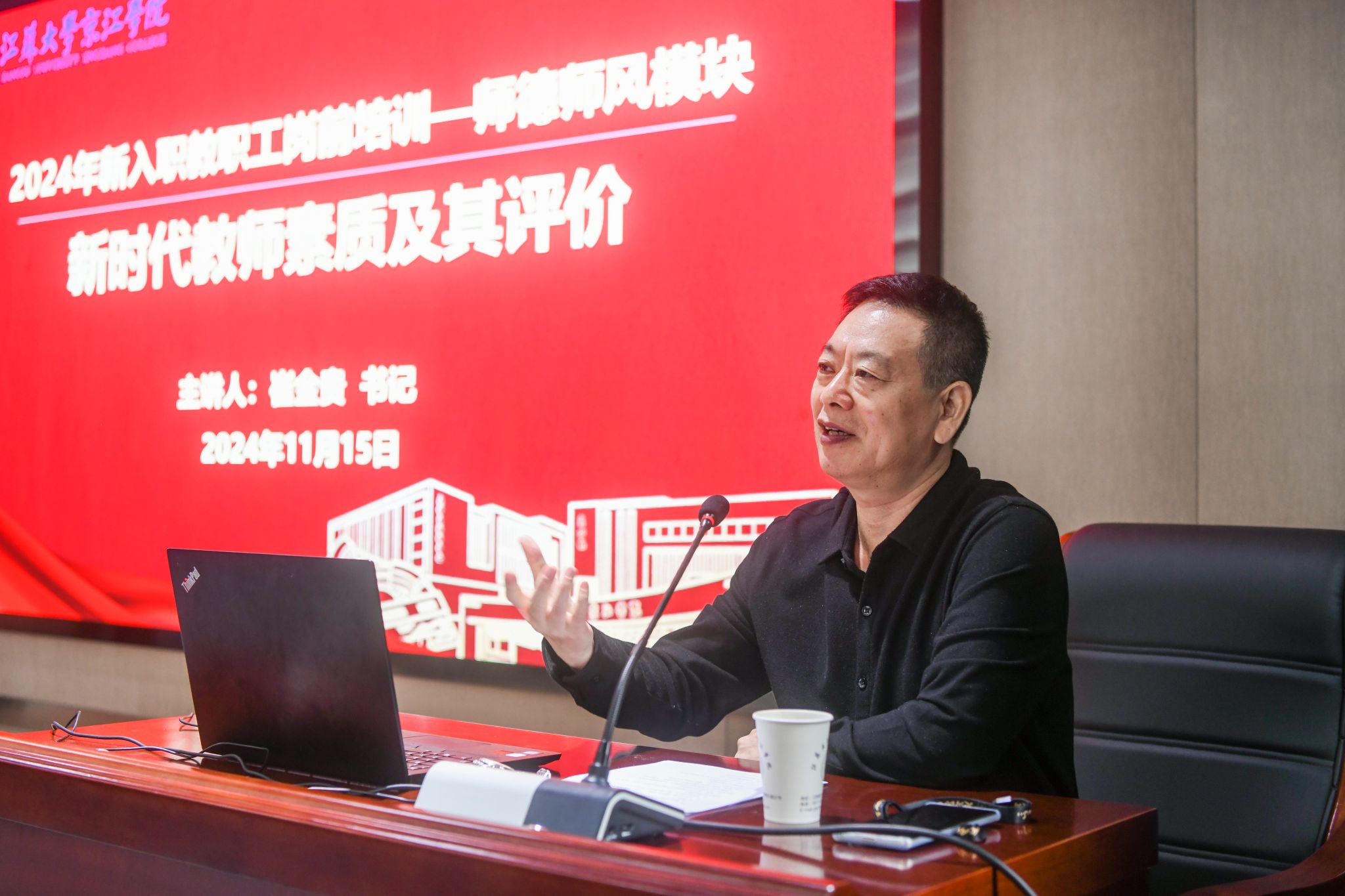 为引导新入职教师树立正确的育人思想和教学理念,帮助他们扣好师德师风“第一粒扣子”,走好教师生涯“第一步”,环球360会员登录组织开展新入职教师师德师风教育专题讲座。江苏大学冯军教授以“三‘爱’立‘教’,三‘好’强‘教’”为主题,指导新教师树立正确的职业观与价值观。环球360会员登录党委书记崔金贵教授对新时代教师应具备的素质及评价作了详细解读,强调优秀的教师应具备健康的心理素质、丰富的知识素养、较强的专业能力等综合素质。环球360会员登录通过举办师德师风专题讲座,引导教师树立正确教育理念,增强职业责任感与使命感,为培养德才兼备、高素质、专业化的教师队伍奠定坚实基础。