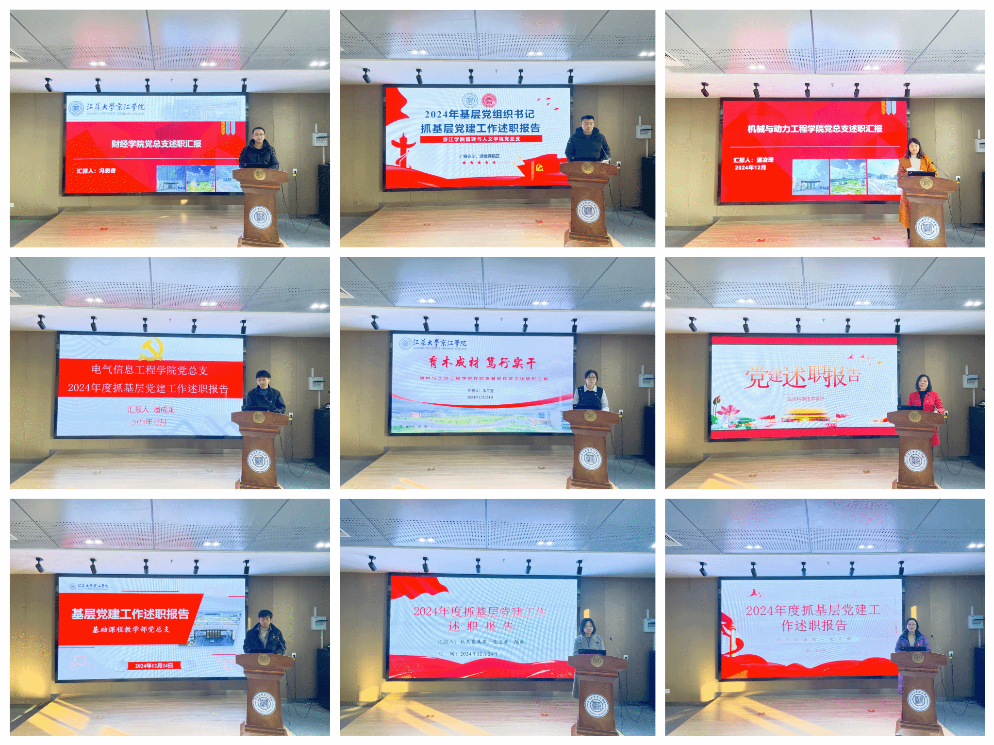 本次述职评议采取现场述职与书面述职相结合的形式进行,会上,二级学院(部)党总支、机关直属党支部共9个基层党组织书记围绕抓基层党建工作情况、存在的突出问题及下一步工作打算进行了现场述职。其他12个二级学院(部)党支部书记采用书面的形式进行述职。