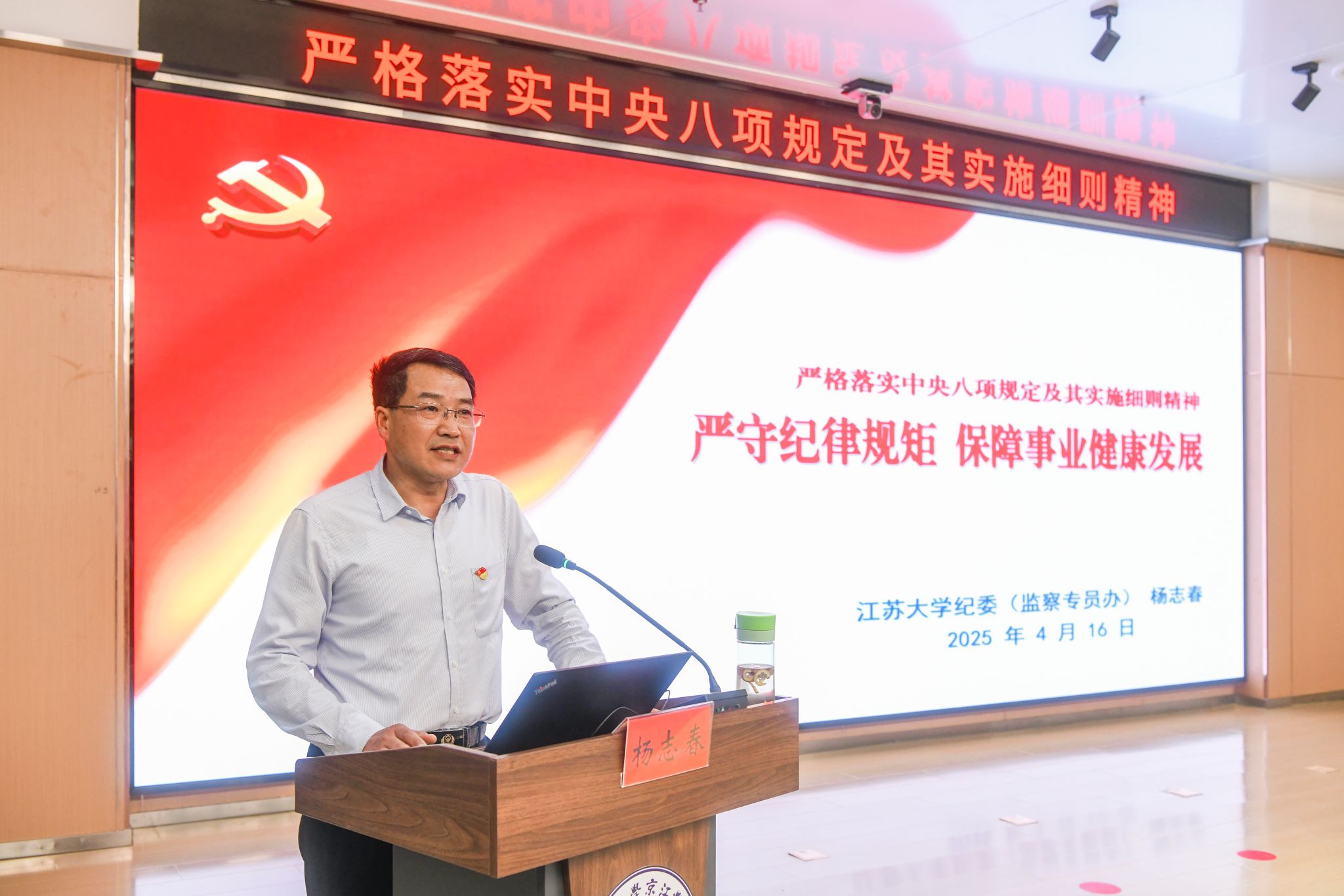为深入贯彻落实中央八项规定及其实施细则精神,推进全面从严治党走深走实。4月16日,环球360会员登录特邀江苏大学纪委副书记杨志春作主题为《严格落实中央八项规定及其实施细则精神 严守纪律规矩 保障事业健康发展》专题讲座,学院全体教职工党员、学生党员代表参加报告会。会议由院长杜道林主持。