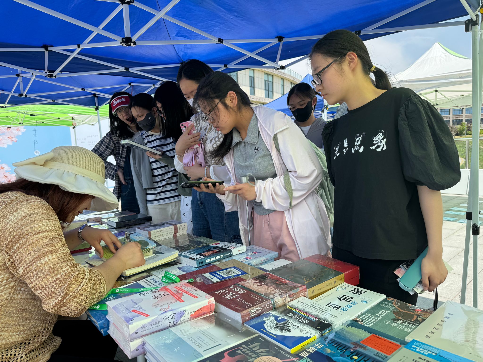 活动现场展示了百余本最新纸质畅销书籍以及电子图书资源,涵盖历史、文学、心理、考研等多个领域,师生纷纷驻足观看挑选心仪的图书,并在签名墙上留下了阅读感悟。