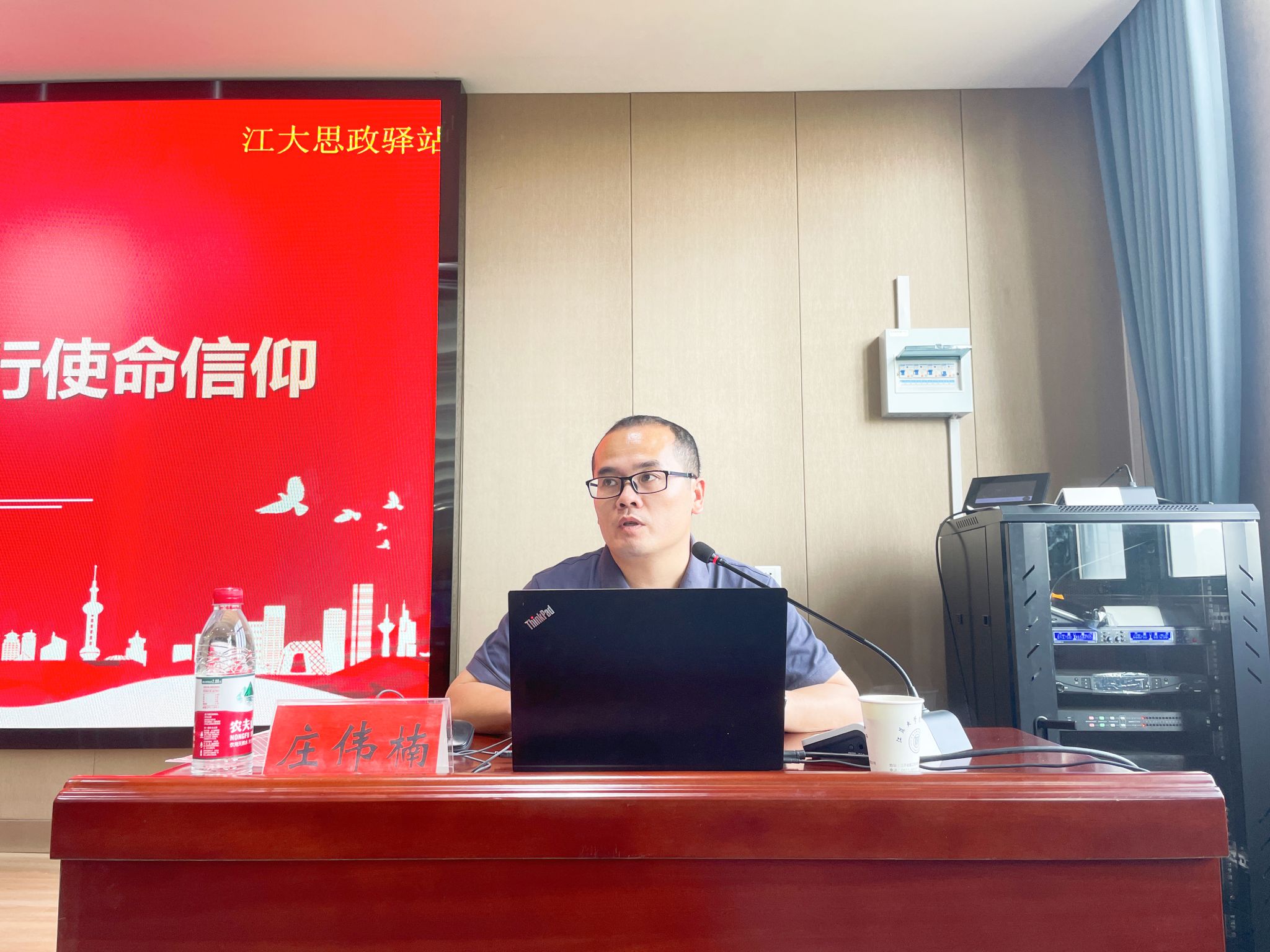 庄伟楠以《领悟誓词初心 坚定使命信仰》为题,向学员们介绍了入党誓词的发展历程与深刻含义,并且详细地解读了伟大建党精神内涵,让同学们对中国共产党的初心和使命有了更深刻的理解领悟。他希望大家学习、践行、铭记入党誓词,永葆入党初心,牢记忠诚使命,夯实忠诚信仰。