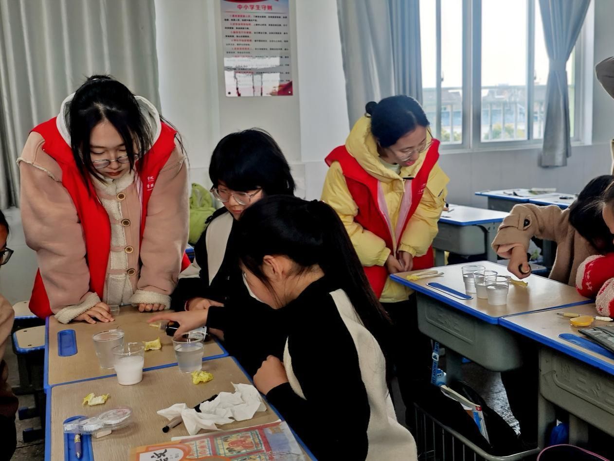 志愿团队成员将实验室技能转化为科普教学资源,在实验材料筹备、课程优化及现场管理中深化专业认知,锤炼服务能力。“雷锋月不仅是志愿服务的契机,更是检验专业价值的试金石。我们用所学知识守护儿童‘舌尖上的安全’,这就是对雷锋精神最好的践行。”食品志愿者张安琪表示。
